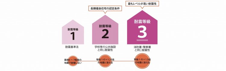 等級1から等級3の段階で評価されます。耐震等級3は耐震性能を示す