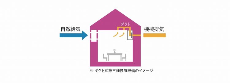 第3種換気システムとは、給気は自然に行い、排気のみを機械的に