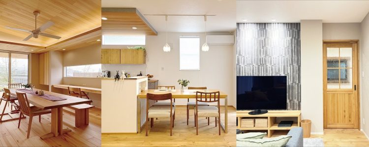 構造材・羽柄材プレカットから、床材、建具、収納家具、造作材など自社オリジナル木質系内装材を使用することで、